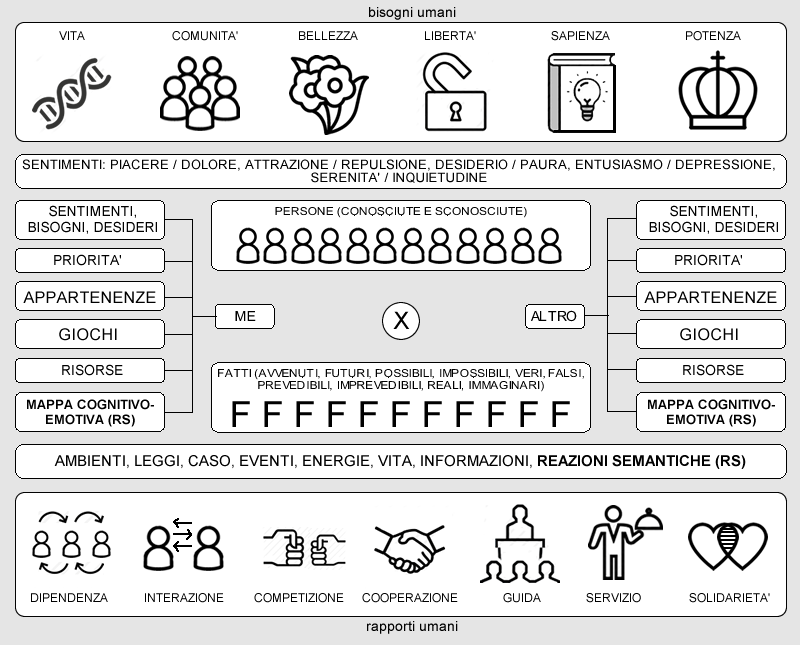 Nel riquadro inferiore sono rappresentate i possibili rapporti tra due esseri umani.